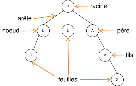 - Père / Fils : Chaque nœud a exactement un nœud père, sauf la racine qui n’en a pas. Un nœud peut avoir un nombre quelconque de fils.