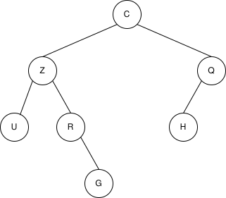 Le nœud Q admet comme sous-arbre gauche le nœud H et comme sous-arbre droit, l’arbre vide.