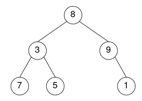 >>> (8, (3, (7, (), ()), (5, (), ())), (9, (), (1, (), ())))Cela correspond à l’arbre représenté ci-dessous :
