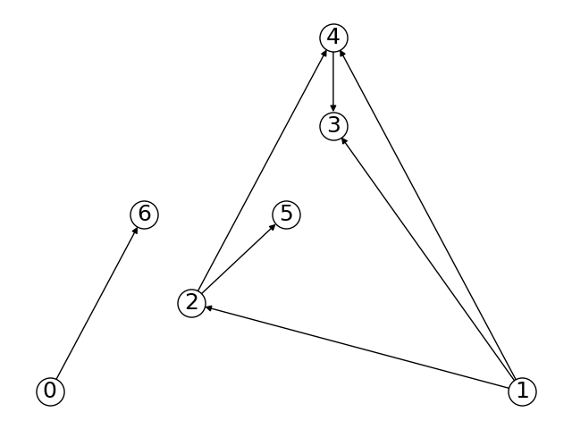 La figure ci-dessous représente un graphe orienté dont les sommets sont numérotés de 0 à 6.