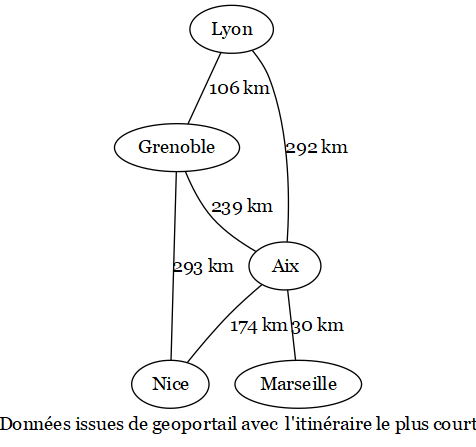 Voici un graphe représentant les distances dans le réseau sud-est.